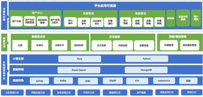 支持被动接收(syslog、winlogbeat、snmp trap、自定义协议);支持主动拉取(wmi、idbc、Webservice、FTP、SFTP)